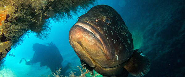 I giochi di luce, con il sole che si rifrange a illuminare le oscurità degli abissi, attraversano i tunnel sottomarini. Lunghe e misteriose caverne, dove le cernie, regine indiscusse di questa porzione di mare, riposano al riparo dai curiosi. Le vedi ovunque, affacciate alle balconate delle montagne sommerse a scrutare l’orizzonte, le vedi nuotare tra banchi di saraghi, incrociare la rotta dei barracuda in formazione, con la loro prestanza massiccia e poderosa da lottatrici di sumo.