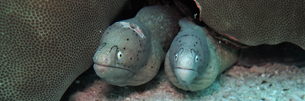 È arrivato il momento di scendere in acqua. Temperatura fresca, refrigerante, intorno ai venticinque gradi. La pesata è la prima sorpresa: la zavorra non basta mai, evidentemente il mare qui è molto salato! La marea, vivace, trasporta con sé spirali argentate di barracuda, branchi di pesci pipistrello, gruppi affollati di carangidi. I pesci gatto strisciano sul fondale, si nascondono negli anfratti ghiaiosi, ti annusano con i loro barbigli, organi sensoriali che gli hanno procurato la nomea di barboni. Le murene sono le regine indiscusse di questo mondo sottomarino. Si declinano in tutte le varietà, da quella gigante a quella leopardo, alla murena tigre o drago, come la chiamano in gergo anglosassone. Lottano per il primato, si azzuffano per la supremazia territoriale, spalancano le bocche orrifiche a filtrare i nutrienti. Ma questa è selva selvaggia e qui accadono cose selvagge. Plano sul pianoro del Cannal Garden, formazioni coralline come piante ornamentali disegnano il paesaggio. Sentinelle in allerta monitorano i dintorni, attente. Sembrano suricati, i suricati del mare, ma sono oloturie. Decine di oloturie, dritte come fusi, stanno lì a bocca aperta, ma forse non è la bocca. Esalano effluvi bianchi e densi che vaporizzano i dintorni. Mai visto nulla di simile prima. Si ipotizza, in un primo momento, che questa sia una forma di meeting, accoppiamento aereo per così dire. Scopro che invece si tratta di strategia difensiva attraverso l’espulsione dei tubi di Cuvier, filamenti appiccicosi emessi per invischiare i potenziali predatori. Lezioni di biologia marina. Come quando due polpi massicci, uno tutto nero, l’altra tutta bianca, si studiano, si provocano. Ammiccano. È il momento di stare fermi, per non interrompere il rituale del corteggiamento. Il maschio allunga un tentacolo verso la femmina. È l’inizio della liturgia dell’amplesso, lento, morbido, policromo. Perché la femmina avvampa durante la copula, cangiando colore dal bianco rilucente al rosso fuoco. Arrossisce, pudica. “Famolo strano”, come si dice a Roma! Niente di più vero in questa selva aspra e forte, così indomabilmente selvaggia.